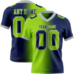 Custom Navy Neon Green-Gray Mesh Authentic Gradient Fashion Football Jersey $27.02