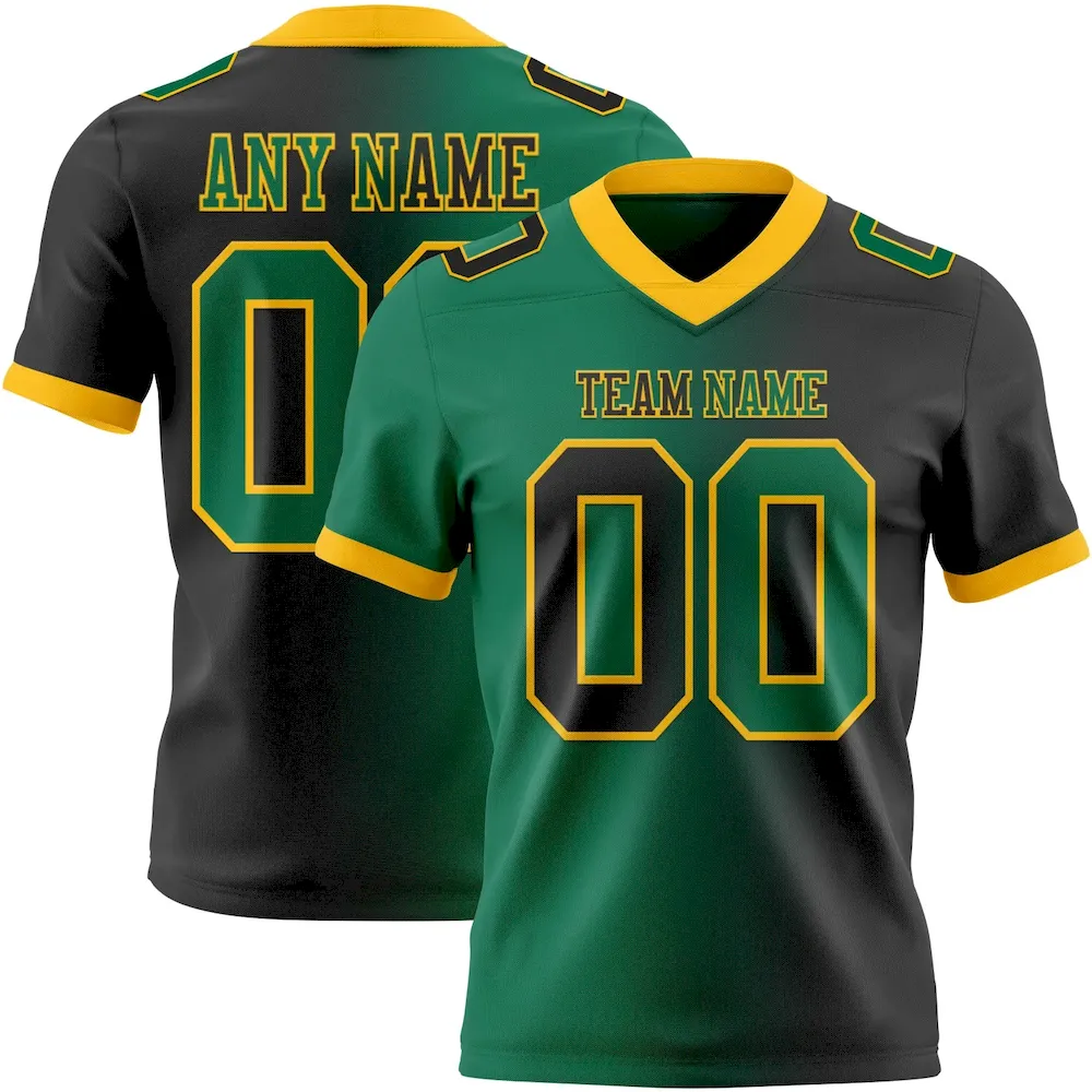 Be the first to review “Custom Black Kelly Green-Gold Mesh Authentic Gradient Fashion Football Jersey” Cancel reply