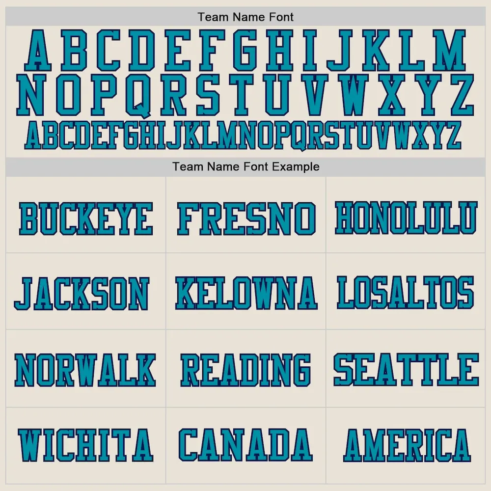 Custom Cream Navy-Teal Mesh Authentic Throwback Football Jersey