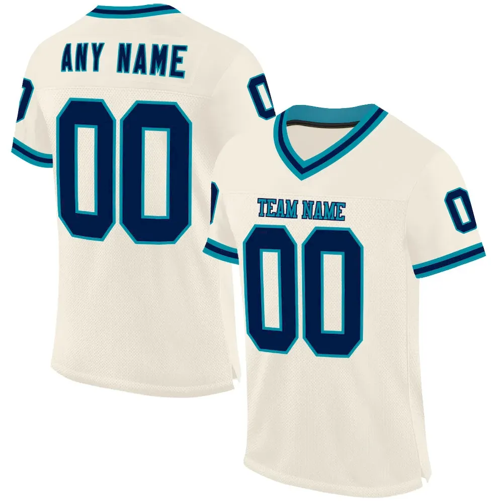 Be the first to review “Custom Cream Navy-Teal Mesh Authentic Throwback Football Jersey” Cancel reply