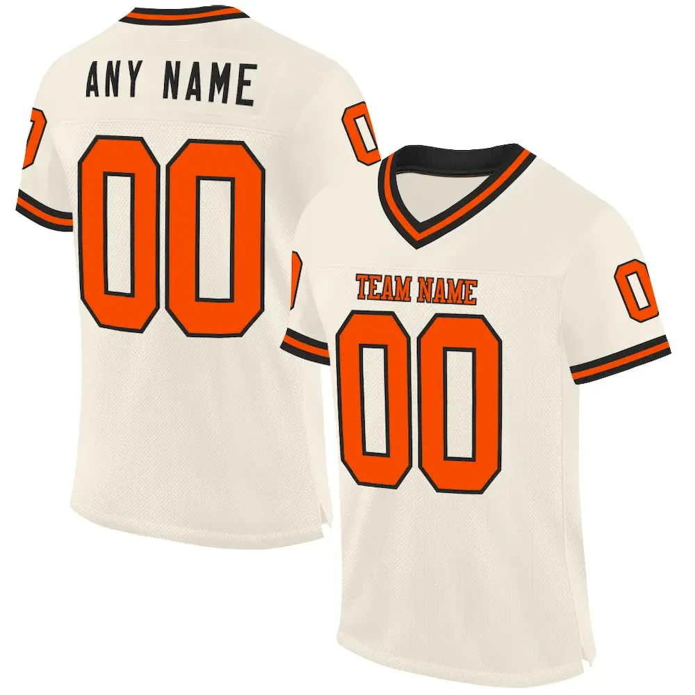 Custom Cream Orange-Black Mesh Authentic Throwback Football Jersey