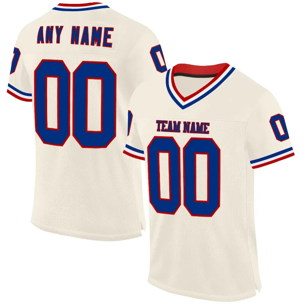 Be the first to review “Custom Cream Royal Red-White Mesh Authentic Throwback Football Jersey” Cancel reply