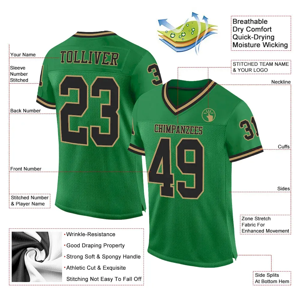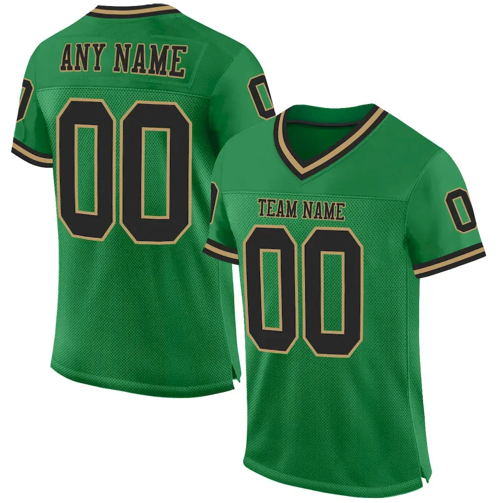 Be the first to review “Custom Grass Green Black-Old Gold Mesh Authentic Throwback Football Jersey” Cancel reply