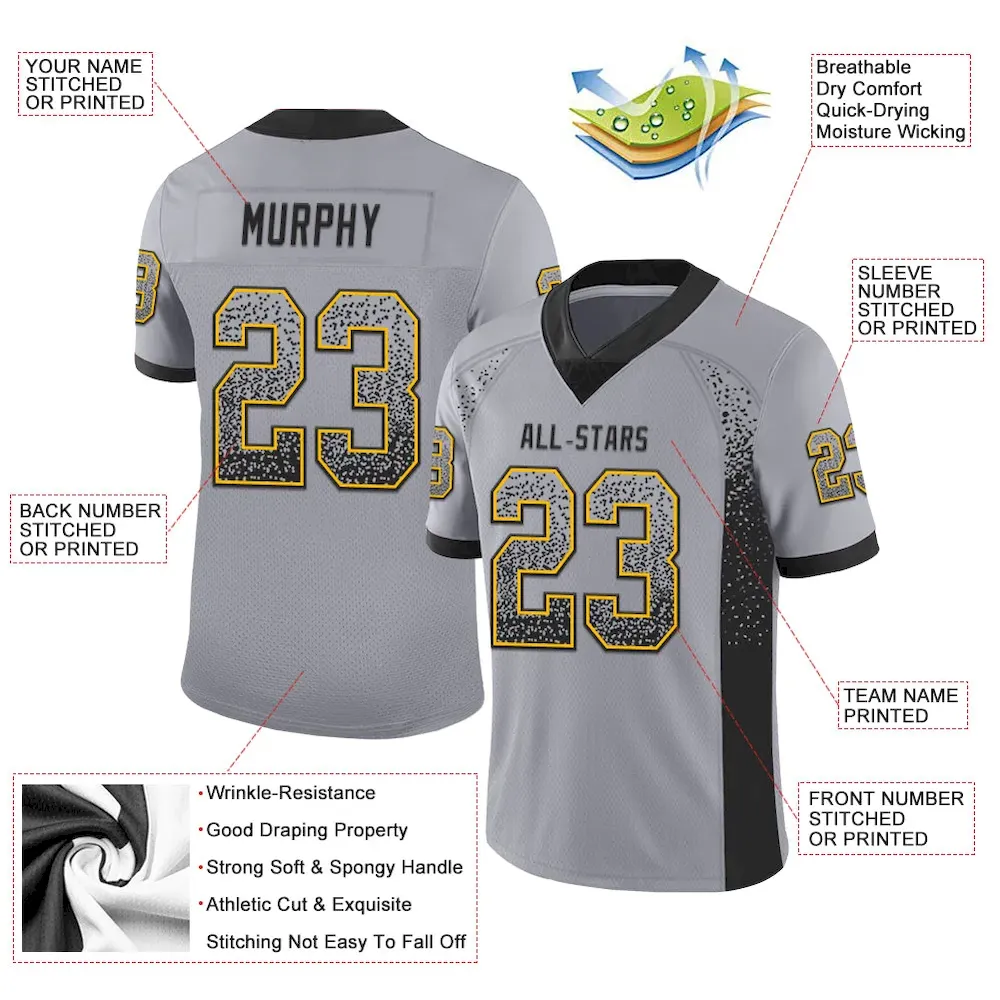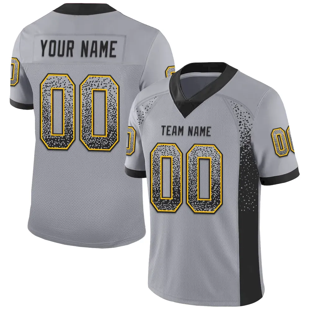 Custom Gray Black-Gold Mesh Drift Fashion Football Jersey