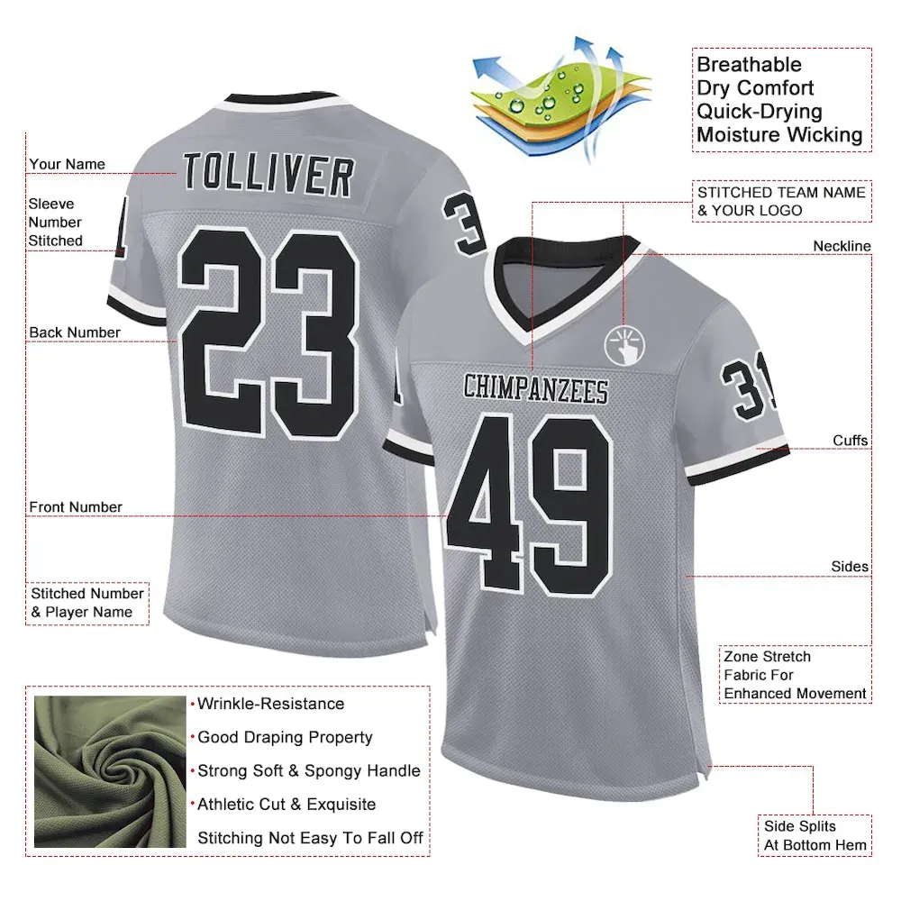Be the first to review “Custom Gray Black-White Mesh Authentic Throwback Football Jersey” Cancel reply