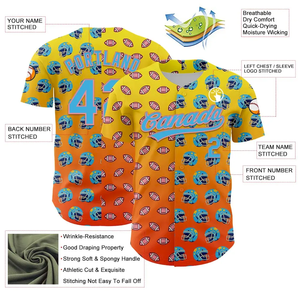 Be the first to review “Custom Light Yellow Sky Blue Orange-Medium Pink 3D Pattern Design Football Helmet And Football Elements Authentic Baseball Jersey” Cancel reply
