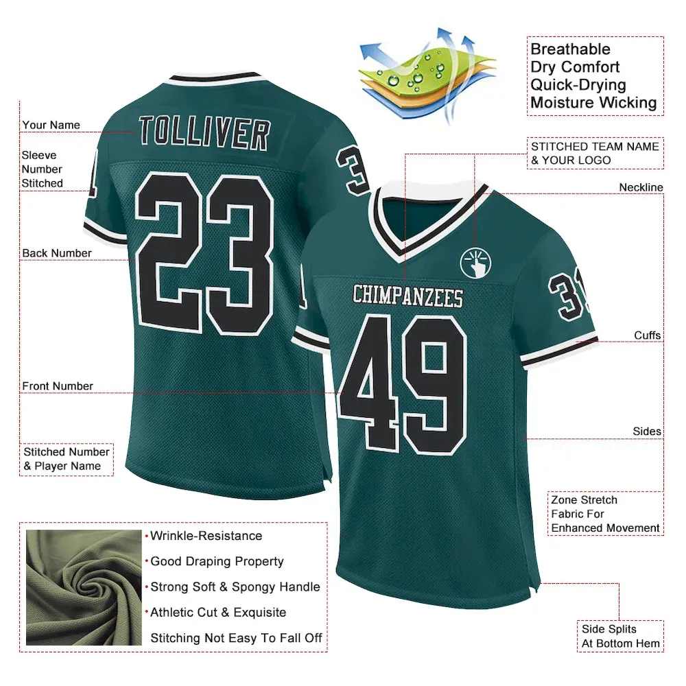 Be the first to review “Custom Midnight Green Black-White Mesh Authentic Throwback Football Jersey” Cancel reply