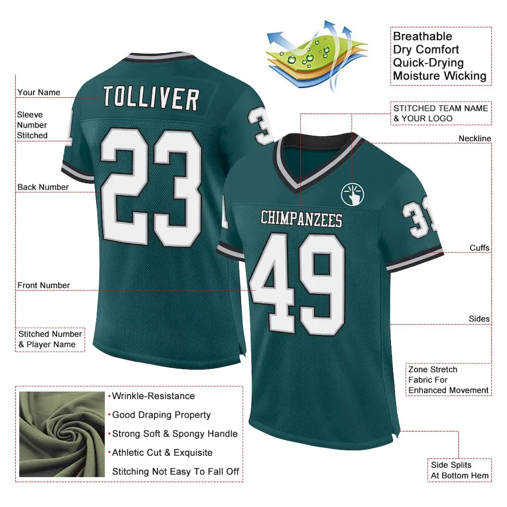 Be the first to review “Custom Midnight Green Gray-Black Mesh Authentic Throwback Football Jersey” Cancel reply