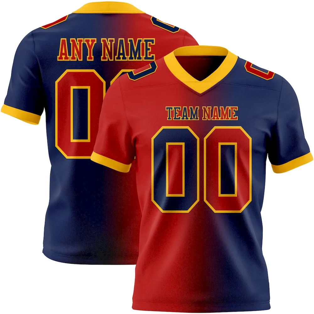 Custom Navy Red-Gold Mesh Authentic Gradient Fashion Football Jersey