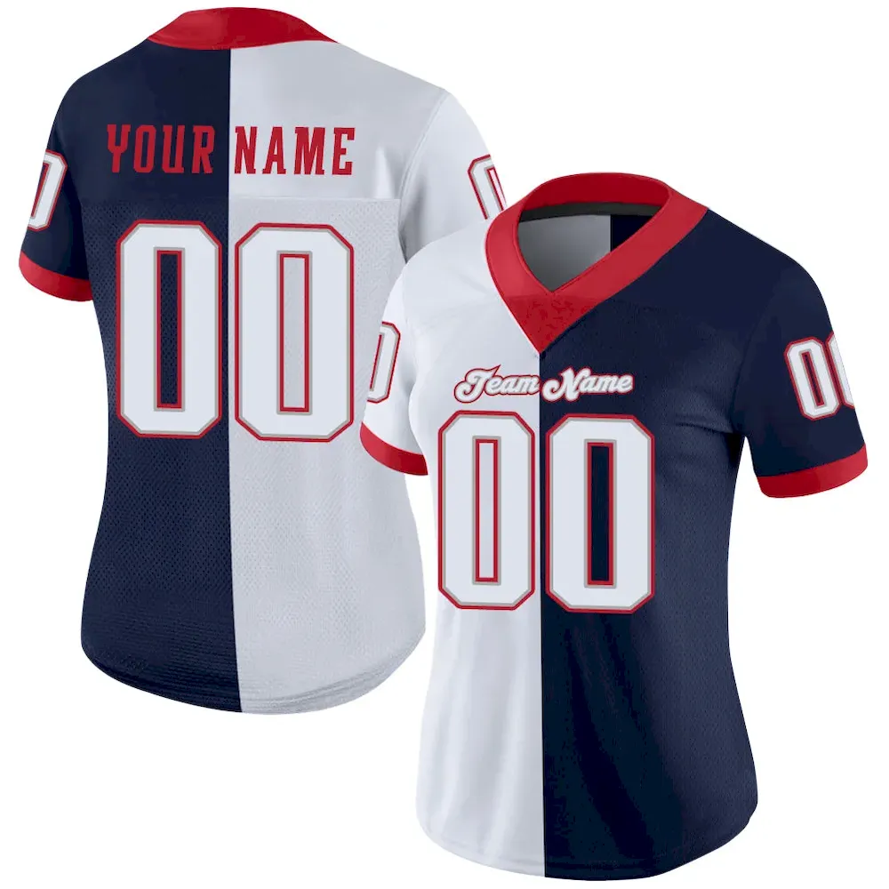 Custom Navy White-Scarlet Mesh Split Fashion Football Jersey