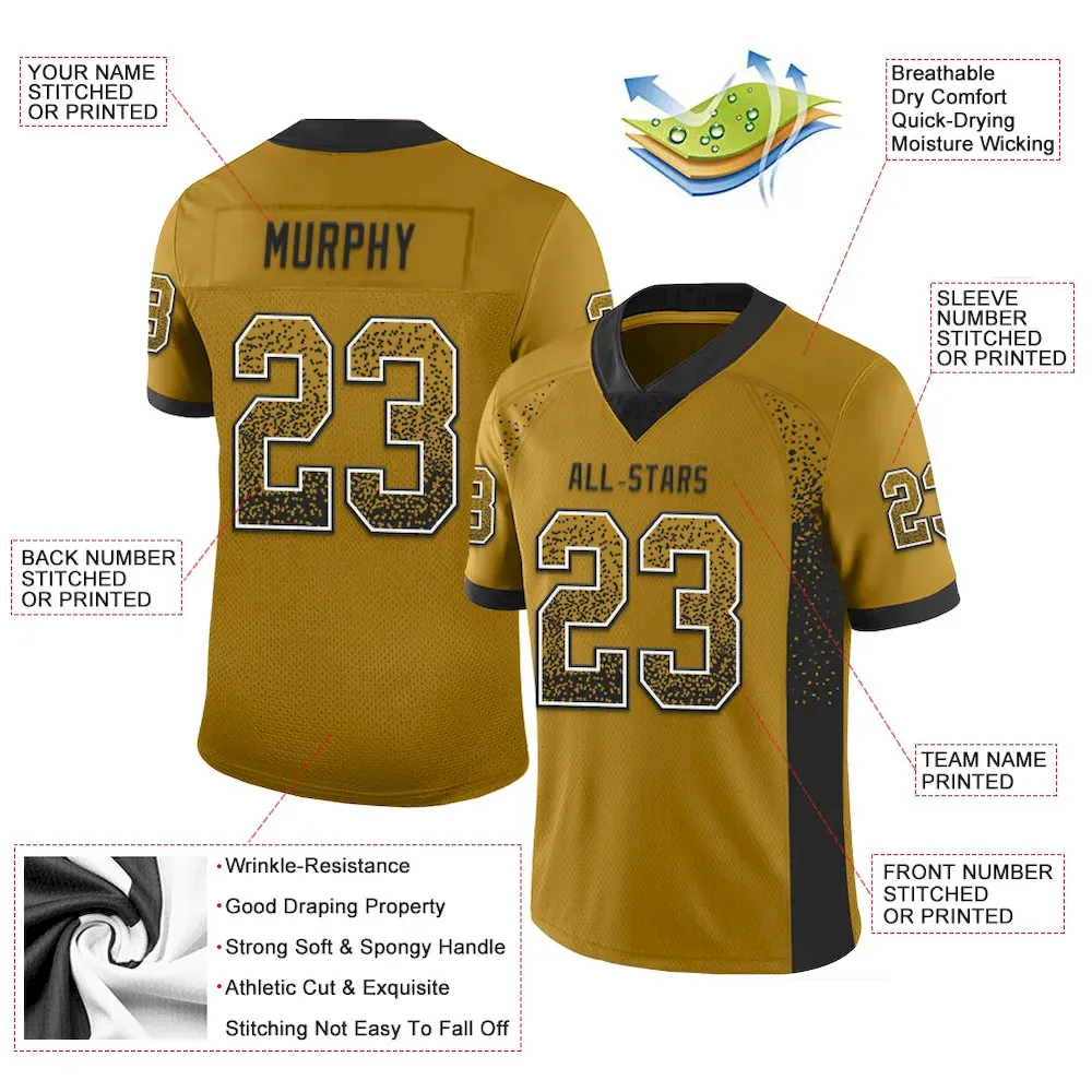 Be the first to review “Custom Old Gold Black-White Mesh Drift Fashion Football Jersey” Cancel reply