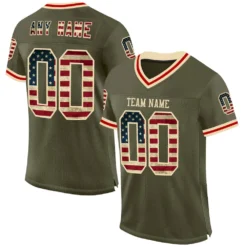 Custom Olive Vintage USA Flag Cream-Red Mesh Authentic Throwback Salute To Service Football Jersey $27.02