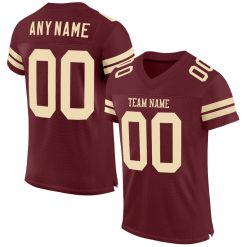 Custom Burgundy Cream Mesh Authentic Football Jersey $27.99