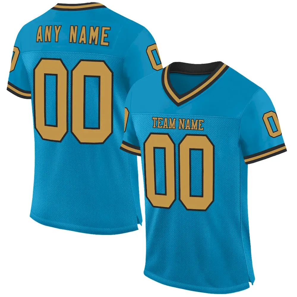 Be the first to review “Custom Panther Blue Old Gold-Black Mesh Authentic Throwback Football Jersey” Cancel reply
