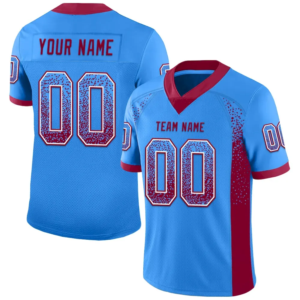Be the first to review “Custom Powder Blue Maroon-White Mesh Drift Fashion Football Jersey” Cancel reply