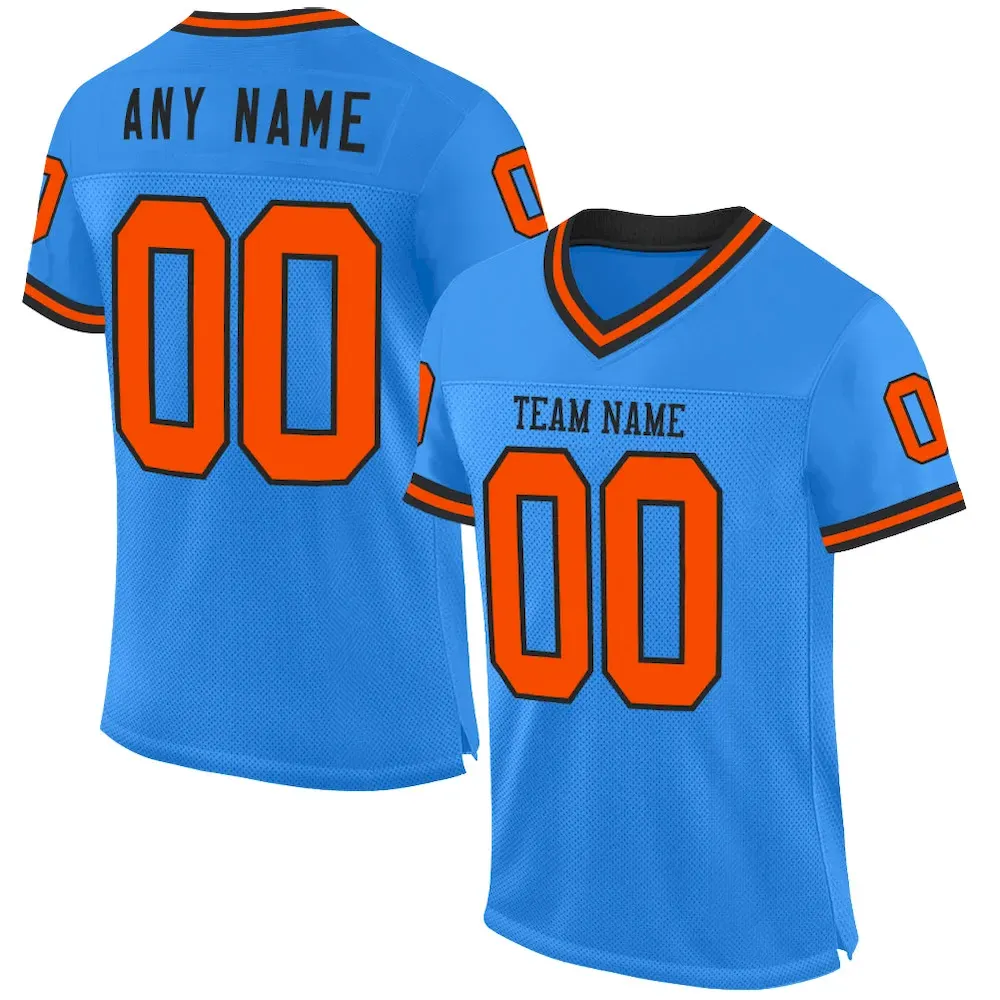 Custom Powder Blue Orange-Black Mesh Authentic Throwback Football Jersey