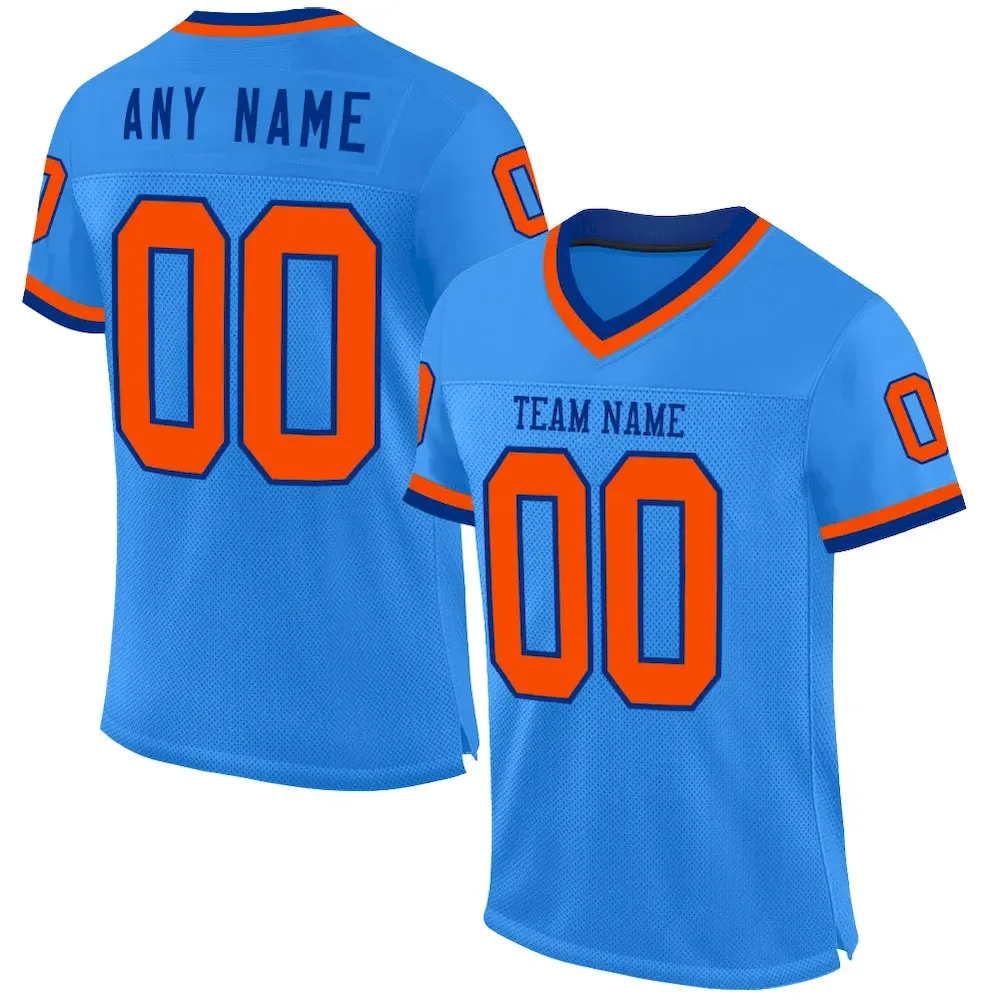 Be the first to review “Custom Powder Blue Orange-Royal Mesh Authentic Throwback Football Jersey” Cancel reply