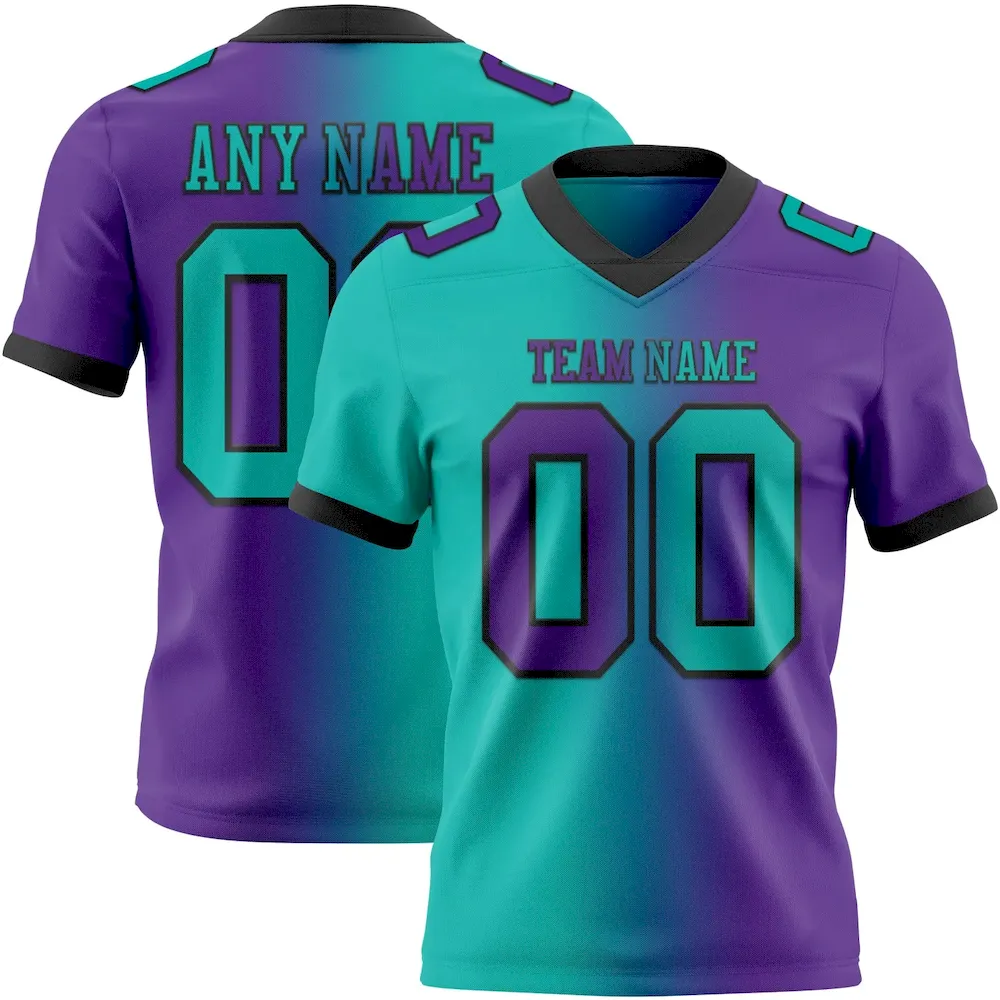 Custom Purple Aqua-Black Mesh Authentic Gradient Fashion Football Jersey