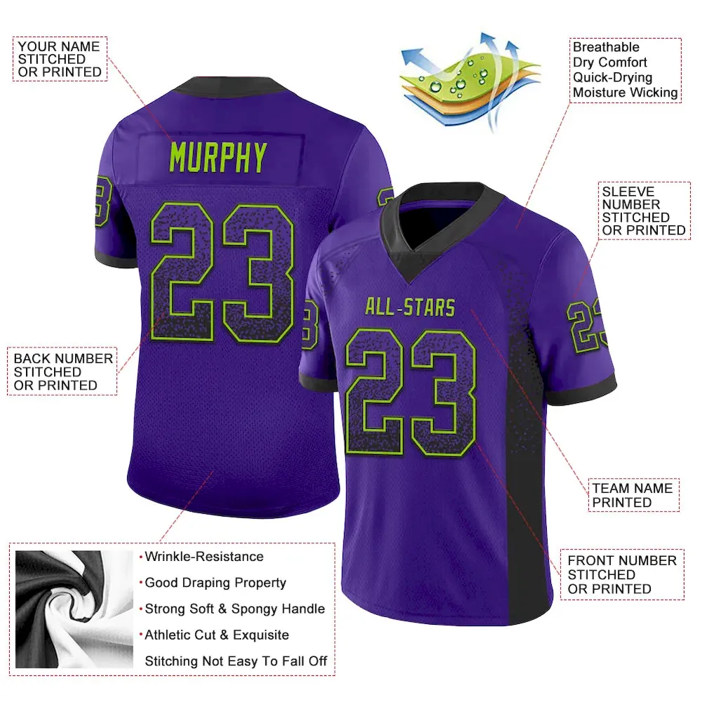 Custom Purple Black-Neon Green Mesh Drift Fashion Football Jersey
