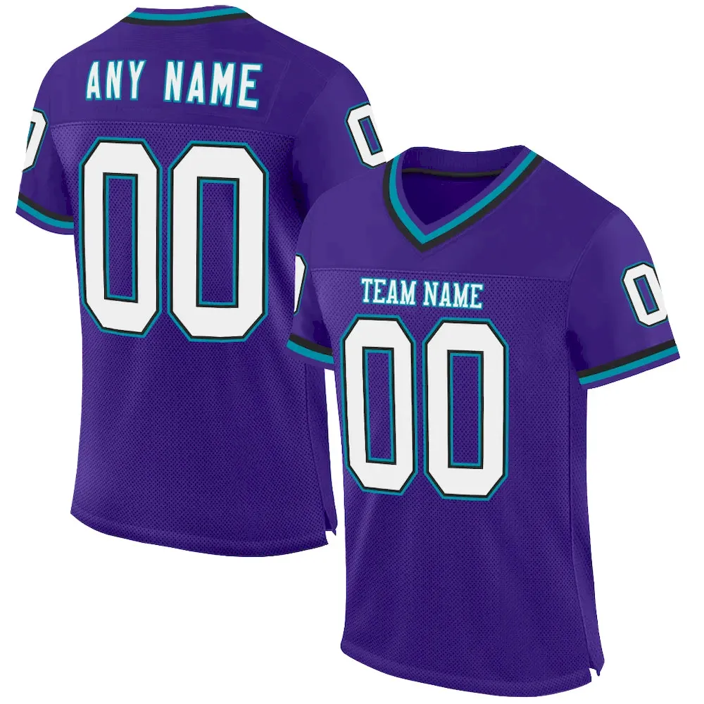 Custom Purple Black-Teal Mesh Authentic Throwback Football Jersey