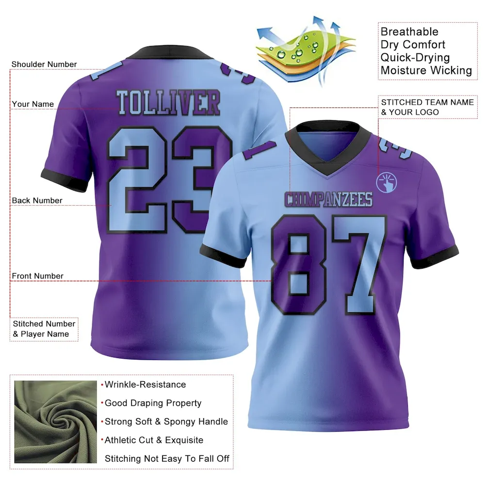 Be the first to review “Custom Purple Light Blue-Black Mesh Authentic Gradient Fashion Football Jersey” Cancel reply