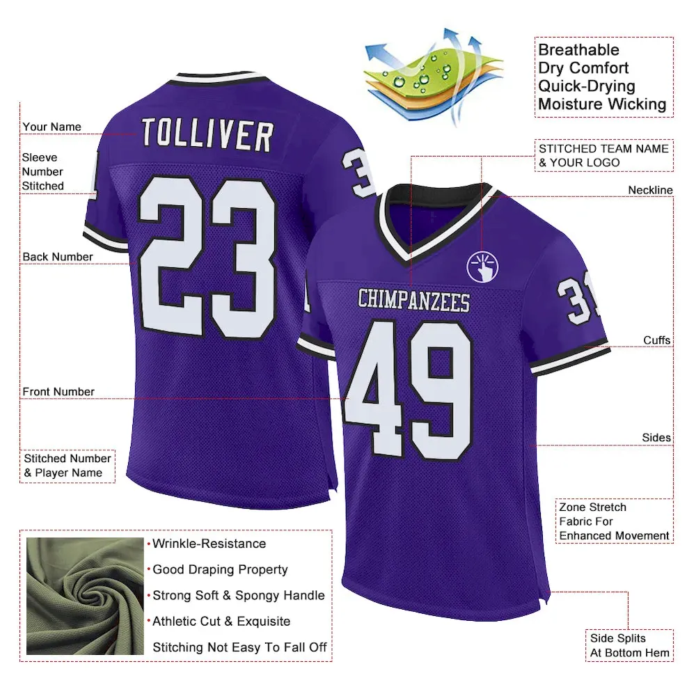 Be the first to review “Custom Purple White-Black Mesh Authentic Throwback Football Jersey” Cancel reply