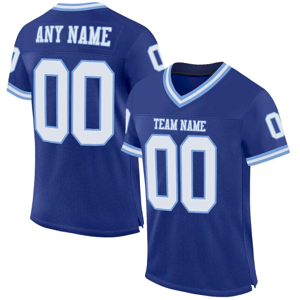 Custom Royal White-Light Blue Mesh Authentic Throwback Football Jersey
