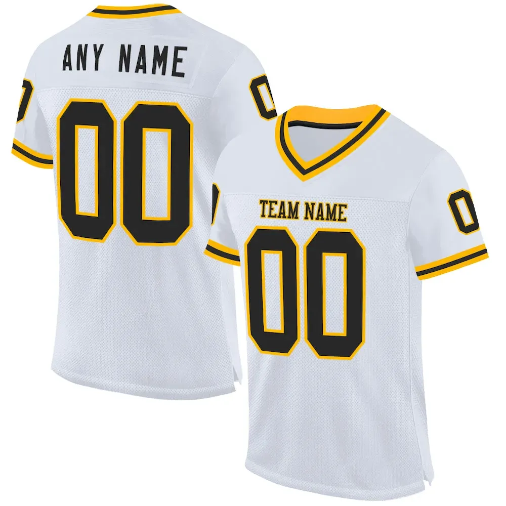 Custom White Black-Gold Mesh Authentic Throwback Football Jersey