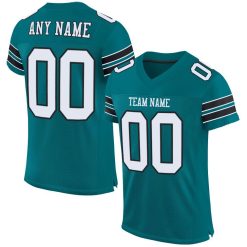 Custom Teal White-Black Mesh Authentic Football Jersey $29.99